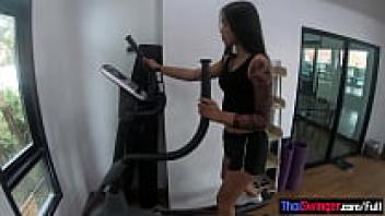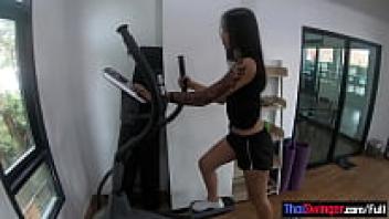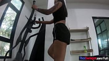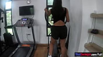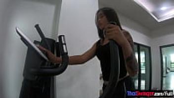 Thai amateur teenage hottie working out at the gym and then engaging in handjob porn