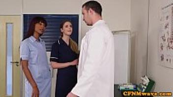 Female British nurses sharing a subordinate's cock