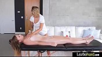Pressley Carter and Alex Blake, two attractive teenage lesbos, perform a sex act on camera in video number 27.