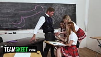 A horny girl gets double penetrated in a gangbang with her classmates in an accidental gangbang.